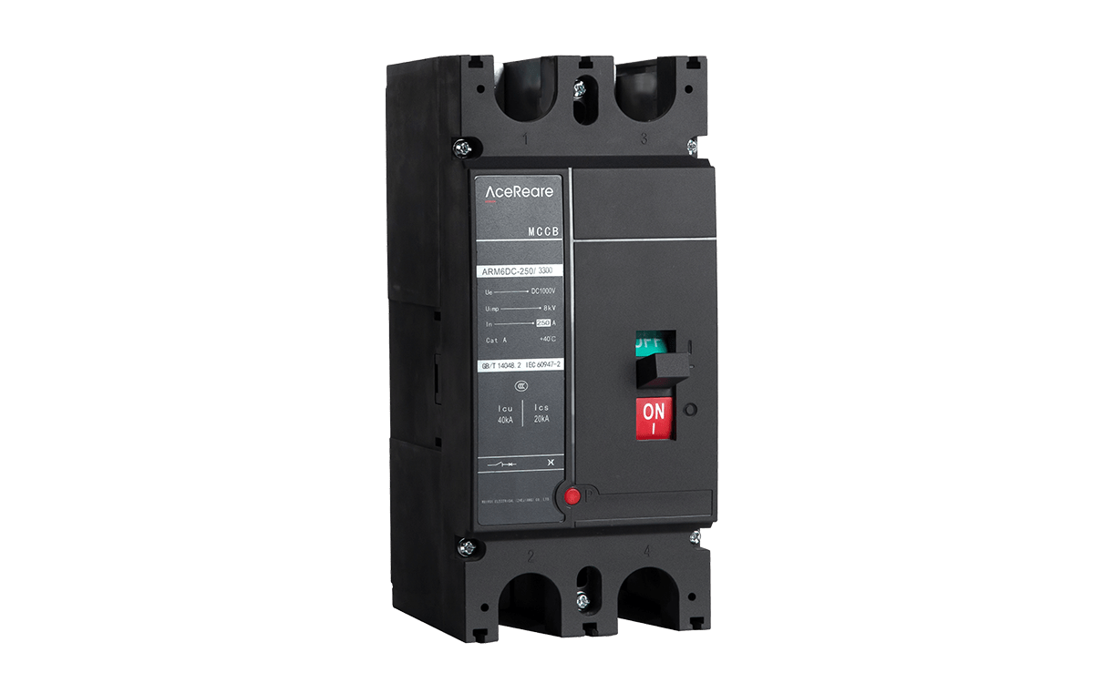 ARM6DC系列塑料外壳式断路器适用于集中式光伏电站系统,2p直流输入电压500~1000V,4P直流电压可高达1500V。