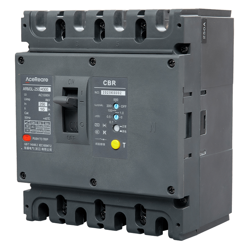 剩余电流断路器,主要适用于交流50Hz,额定电压400V,额定电流至800A的配电网络中,用来对人提供间接接触保护,也可用来防止因设备绝缘损坏,产生接地故障电流而引起的火灾危险,并可用来分配电能和保护线路及电源设备的过载和短路,还可作为线路的不频繁转换和电动机不频繁启动之用。常规的带剩余电流保护断路器的漏电保护模块工作电源取样为二相,本系列断路器为三相,若缺一任一相,断路器漏电保护模块仍能正常工作;额定剩余动作电流及最大断开时间根据实际情况现场可调;当相电压降低至50V,漏电保护模块仍能正常工作